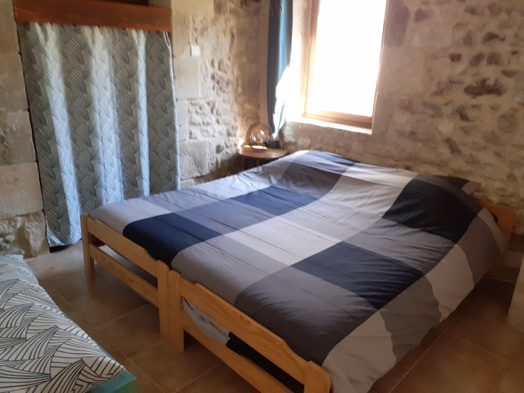 – 1 chambre de 9m2 avec 2 lits 1 place (90×200 cm) ;
