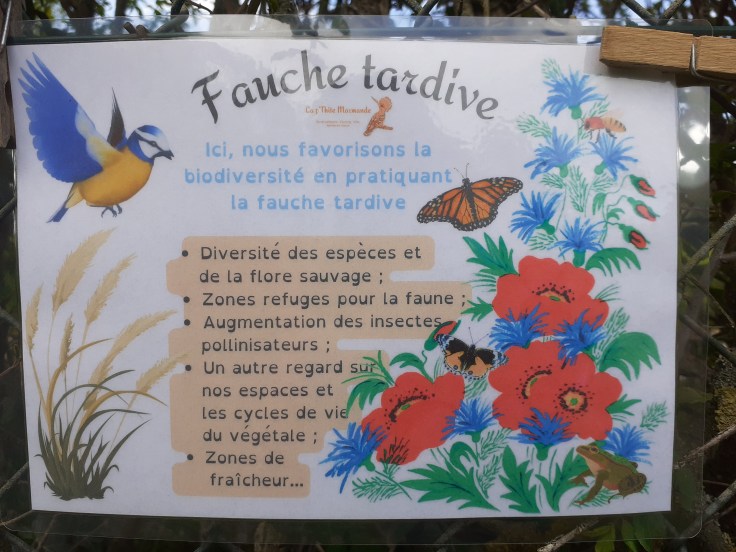 – accès libre pour de la balade aux 11,5 ha de terrains de La p’Thite Marmande (bois, prairie, étang, tables de pique-nique) hors zones de productions et parties privées.